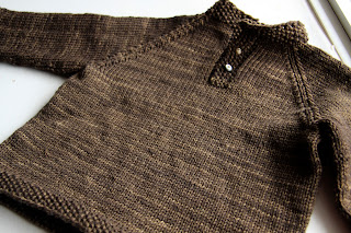 I finished another project this morning. The Placket-Neck Pullover from Joelle Hoverson's Last Minute Knitted Gifts. Hoverson is the owner of Purl in New York. As an avid traveller, I have a long list of places I really want to go and must admit that Purl is on it. The advertisements have me totally smitten. The photos are lovely combinations of yarn and sewing related stuff and I pause and spend time just admiring the ads every time I come across one in a magazine. They make me want to book the next flight to New York. Maybe I should!
